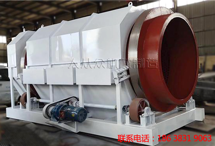 紙漿篩分機(jī)主要是由動(dòng)力組件、粗料出料口、上密封殼、篩筒、篩下物出料口、擋料板、進(jìn)料口、支架等部分組成的。滾筒篩通過(guò)變速減速系統(tǒng)使篩分筒在一定轉(zhuǎn)速下旋轉(zhuǎn),其分級(jí)級(jí)數(shù)一般從細(xì)到粗為1-4節(jié),物料自上而下通過(guò)篩分筒得到粉粒,細(xì)料從篩分筒前端下部排出,粗料從篩分筒下端尾部排出,實(shí)現(xiàn)物料分級(jí)、過(guò)濾目的。