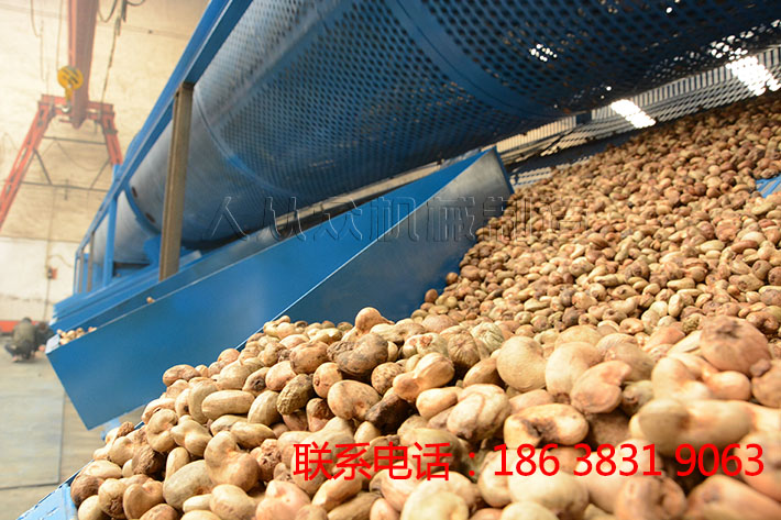 腰果篩分機(jī)/干果篩分機(jī)替代人工進(jìn)行大小的分揀,目前我司生產(chǎn)的腰果滾筒篩長(zhǎng)度可達(dá)12米,篩分量大、效果佳。