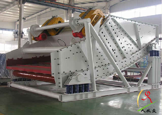 SDH直線等厚是由篩箱、法蘭式激振器、隔振系統(tǒng)、傳動系統(tǒng)等組成的,振動篩機(jī)面由不同傾角的多區(qū)段(一般為三段)組成,使篩分物料在各區(qū)段呈近似等厚分布,有利于物料在篩面上的輸送、分層和透篩。直線等厚振動篩篩面選用不同傾角的折線形式、采用法蘭式激振器,由兩臺電機(jī)外拖動作反方向同步運(yùn)動,使入料端到出料端物料厚度近似相同,各段篩面上物料量與流速比值穩(wěn)定,料層均衡,篩分效率顯著提高,比相同有效面積振動篩處理可提高1-2倍,特別對于中細(xì)物料分級效果更為顯著。