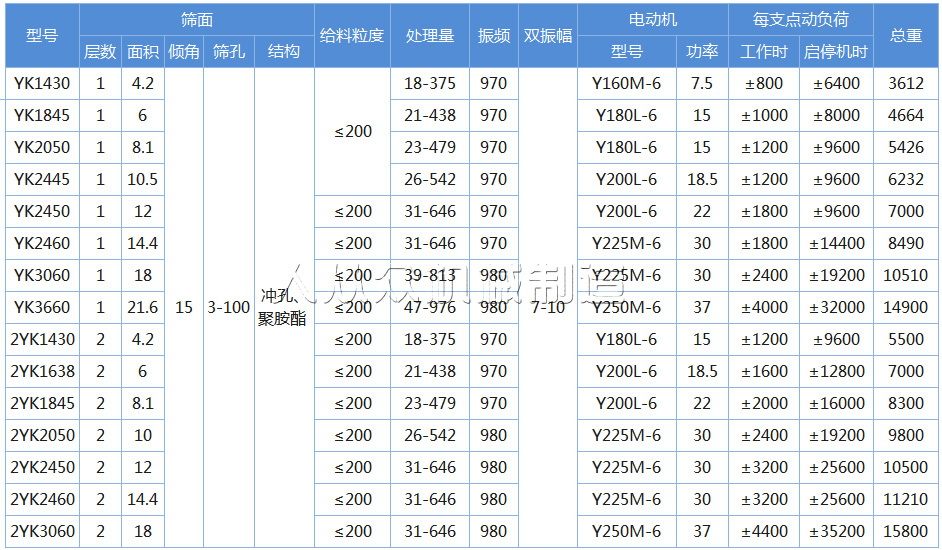 YK圓振動(dòng)篩技術(shù)參數(shù):