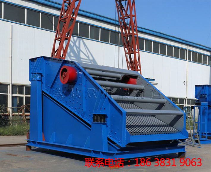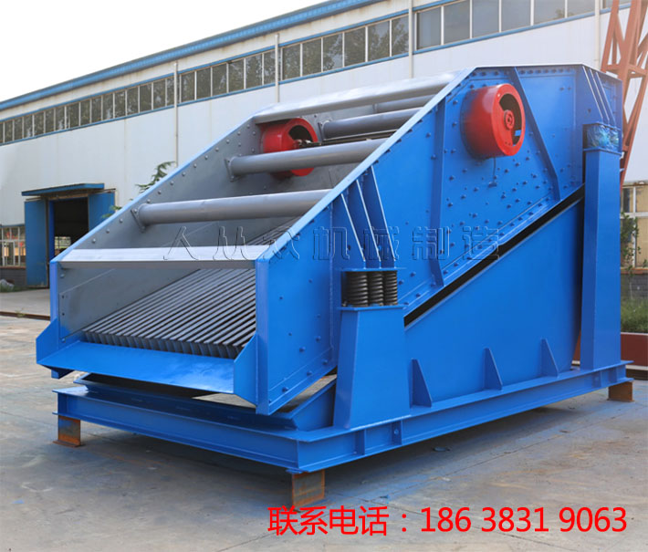 棒條振動(dòng)篩主要由振動(dòng)機(jī)架、彈簧、振動(dòng)器、電機(jī)振動(dòng)架及電機(jī)等組成。激振器個(gè)是由二特定位置的偏心軸以齒輪相嚙合組成,裝配時(shí)必須使兩齒輪按標(biāo)記相嚙合,通過電機(jī)驅(qū)動(dòng),使兩偏心軸旋轉(zhuǎn),從而產(chǎn)生巨大合成的直線激振力,使機(jī)體在支承彈簧上作強(qiáng)制振動(dòng),物料則以此振動(dòng)為動(dòng)力,在料槽上作滑動(dòng)及拋擲運(yùn)動(dòng),當(dāng)物料通過槽體上的篩條時(shí),較小的料可通過篩條間隙而落下,可不經(jīng)過下道的破碎工序,起了篩分的效果,提高了工作效率。