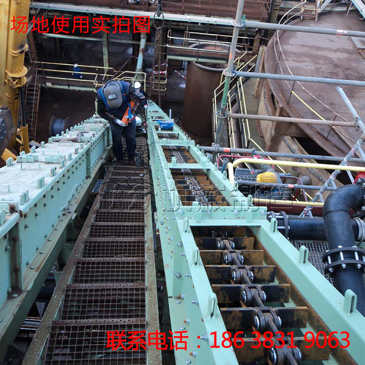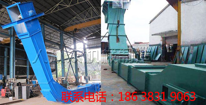 垂直提升時,物料受到刮板鏈條在運動方向的壓力,在物料中產(chǎn)生了橫方向的側(cè)面壓力,形成了物料的內(nèi)摩擦力。同時由于下水平段的不斷給料,下部物料相繼對上部物料產(chǎn)生推移力。這種摩擦力和推移力足以克服物料在機槽中移動而產(chǎn)生的外摩擦阻力和物料自身的重量,使物料形成了連續(xù)整體的料流而被提升。