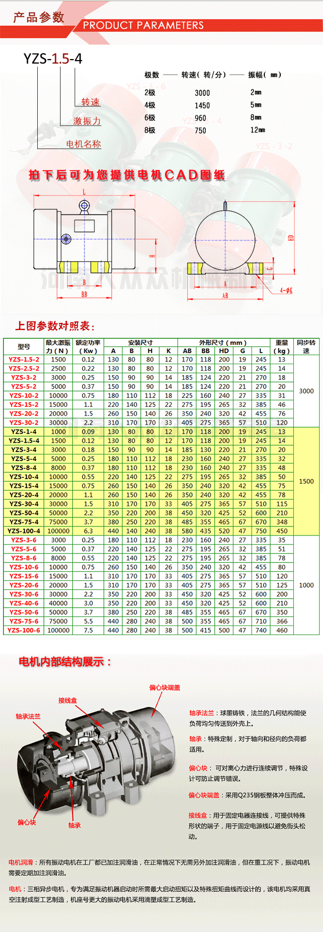 特點(diǎn) | 性能穩(wěn)定,激振力強(qiáng),耐用 |
