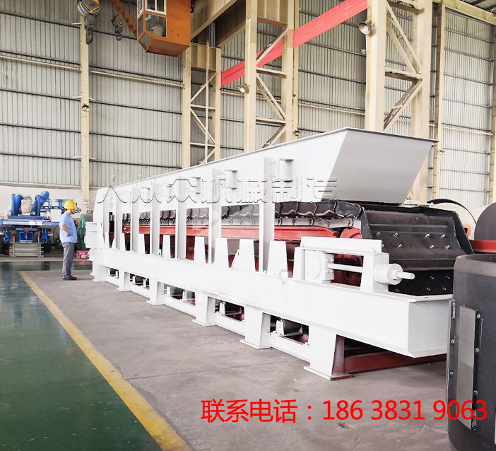 板式給料機(jī)有輕型、中型、重型三種,其至大向上傾角20度。分別適用于沿水平或傾斜的線段由貯料倉向破碎機(jī)輸送機(jī)或其它工作機(jī)械與容器連續(xù)均勻地配給和輸送堆積密度分別為:輕型機(jī)為不大于1200kg/m3,塊重不超過140kg,溫度不高于350℃的各種塊狀和粒狀、散狀物料;中型機(jī)為不大于2400 kg/m3,塊重不超過500kg,溫度不高于400℃的各種松散物料;重型板式給料機(jī)規(guī)格有槽寬1000、1250、1500、2000、2500、3150毫米,長度為420米,多種型號的設(shè)定可滿足不同環(huán)境下的使用情況。